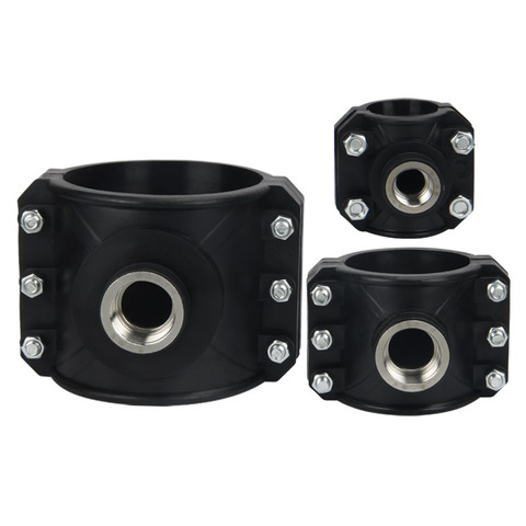 Sección de reparación de sillín PE 20/25/32, accesorios de tubería de agua PE, abrazadera de reparación de fugas rápidas, Interfaz adicional en T